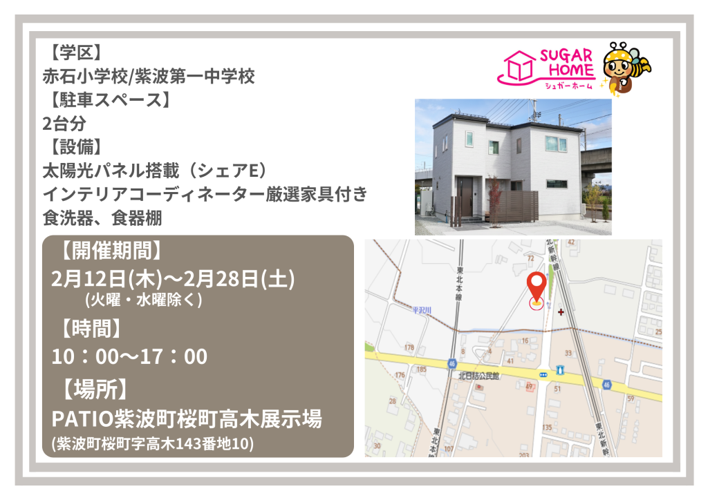 【盛岡店】※予約制※赤石小・紫波一中エリア🏫PATIO紫波町桜町高木展示場見学会🏠 – 岩手のローコスト住宅ハウスメーカー シュガーホーム