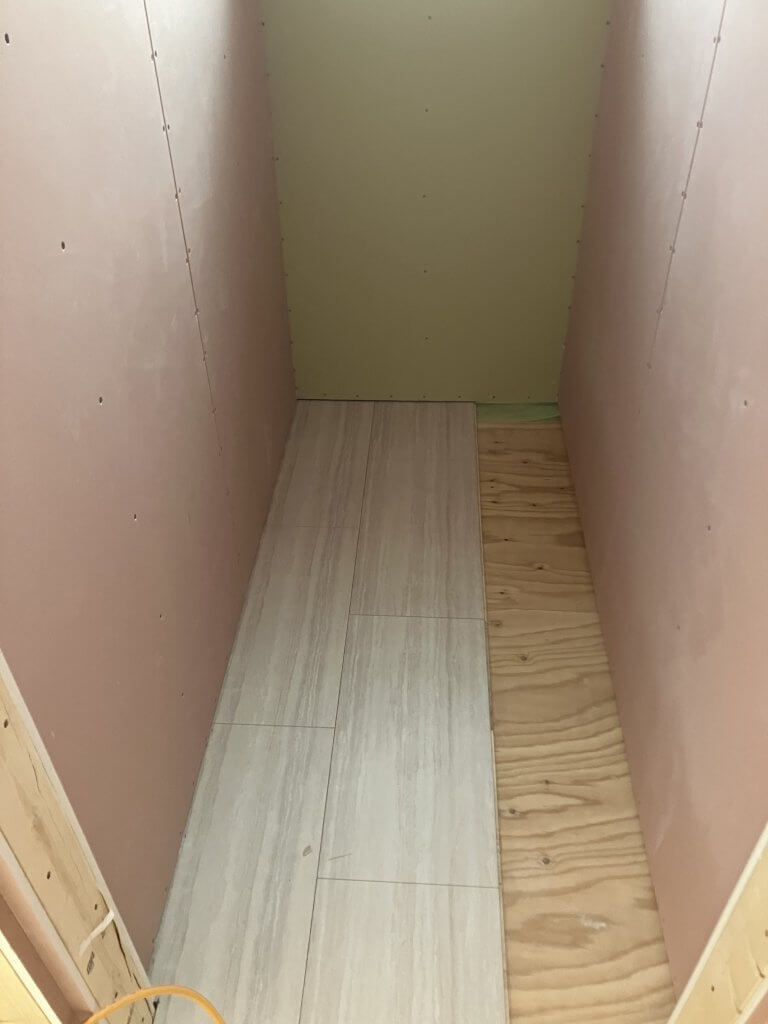 ▲床材の施工が半分ほど進みました!