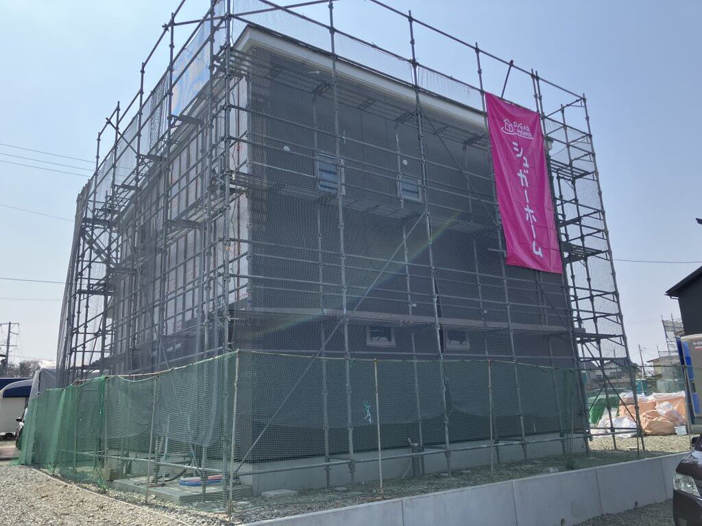 少しずつお家の「顔」が出来上がってきています。 足場が外れて全貌が見える日が、今からスタッフも待ち遠しいです!