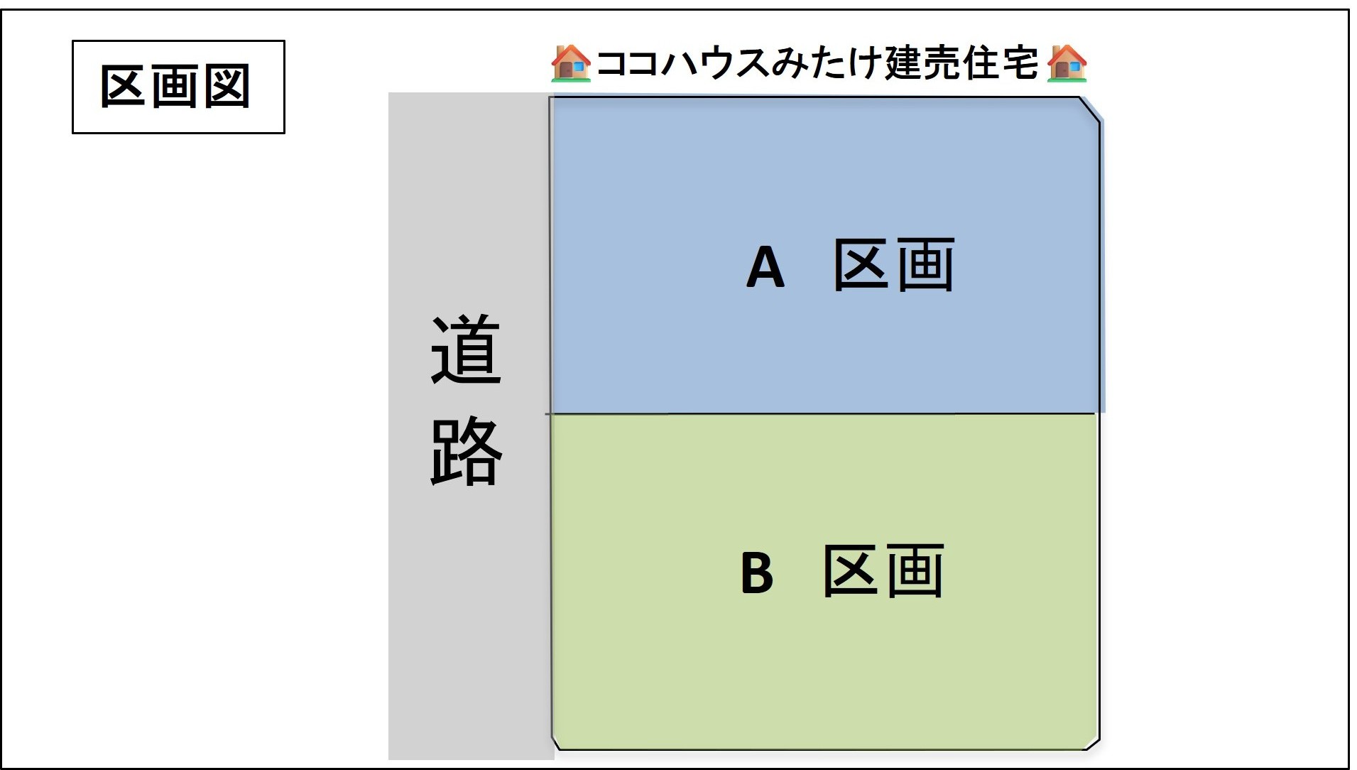 現地写真 区割り図 ★A区画:119.41㎡ 36.12坪★B区画:119.58㎡ 36.14坪 周辺施設 北陵中学校 城北小学校 アクロスプラザ ファミリーマート 三愛病院 青山駅 \みたけ3丁目の土地情報を知りたい。とご入力下さい!/