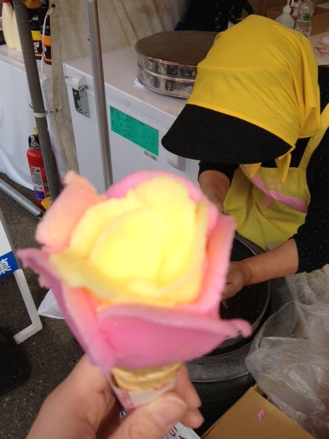 屋台もたくさん出ていて、私は生まれて初めて「ババヘラ」を