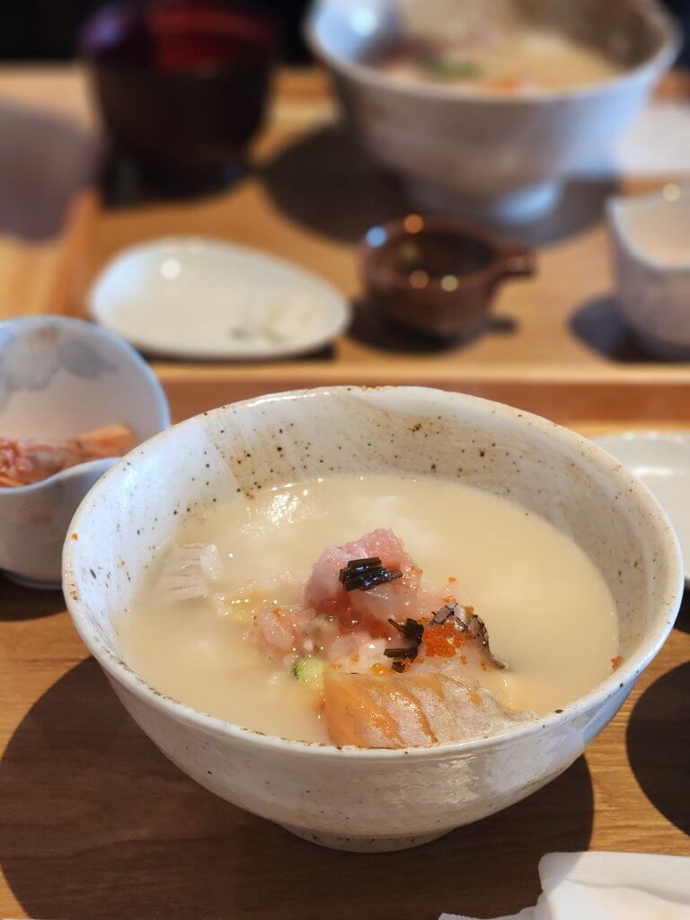 〆の鯛だし茶漬けにする量を三人とも悩みながら、1/3くらいを残して鯛だし茶漬けに!!